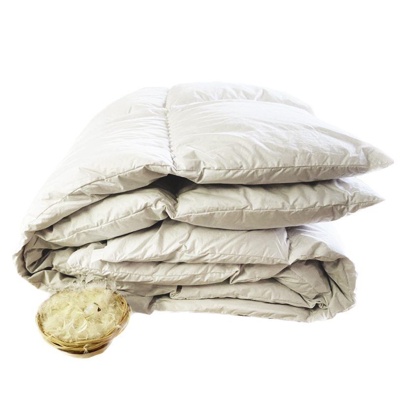 Perový paplón. Výplň: drápané husacie perie. Povrchová látka sýpkovina. Hmtnosť 2000g alebo 2500g. Vyrobené na Slovensku.